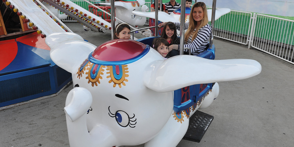 Let the kids take you for a drive on this rotating slide ride!
